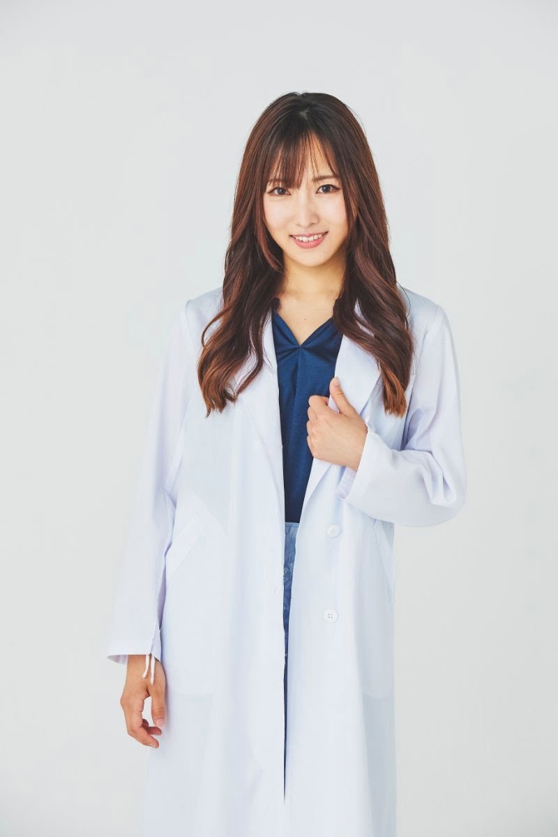 撮影用の衣装なのは承知だけど、医療用の白衣じゃなくて実験校の白衣だし、