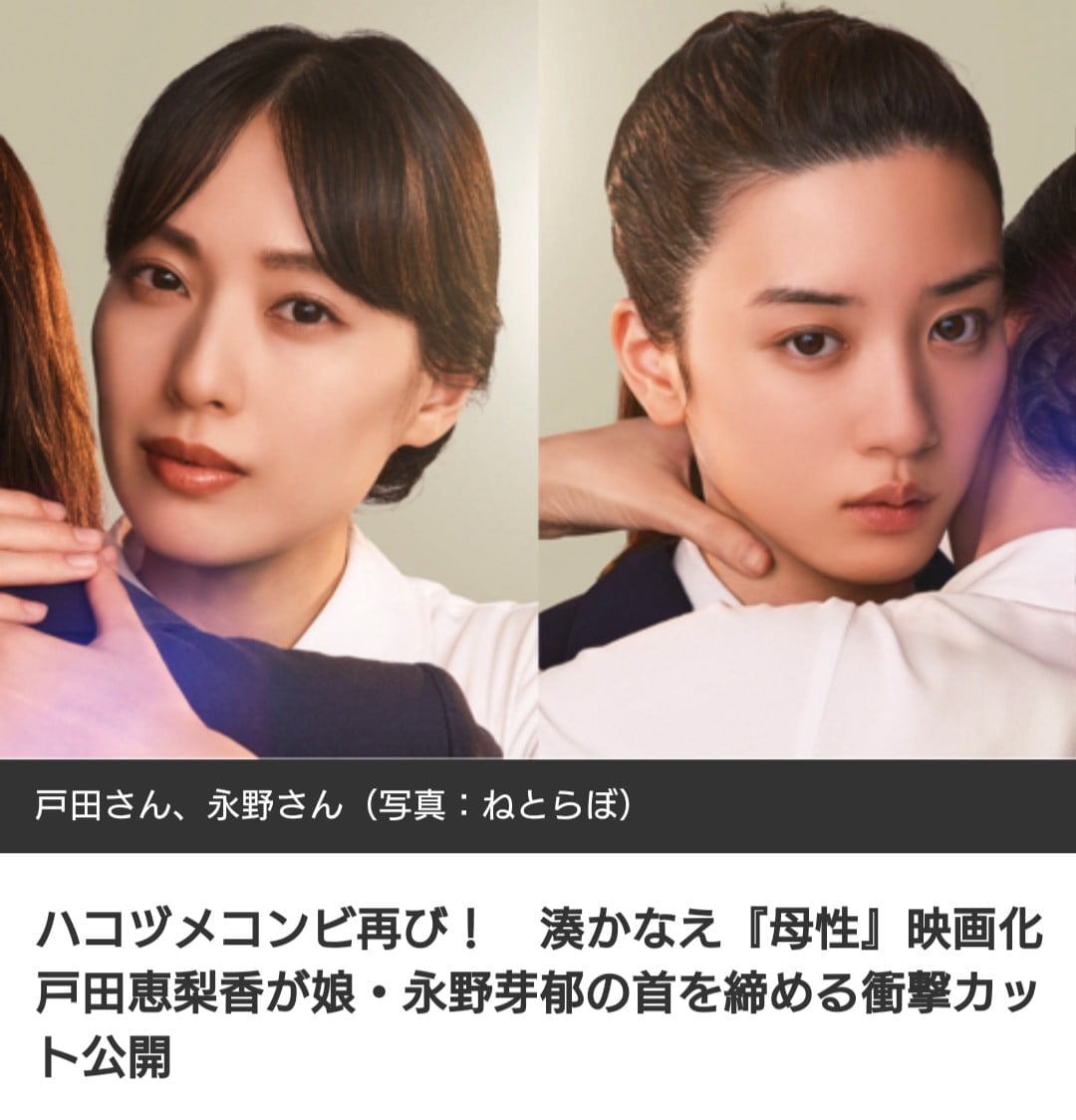ハコヅメコンビ再び! 湊かなえ『母性』映画化 戸田恵梨香が娘・永野芽郁の首を締める衝撃カット公開