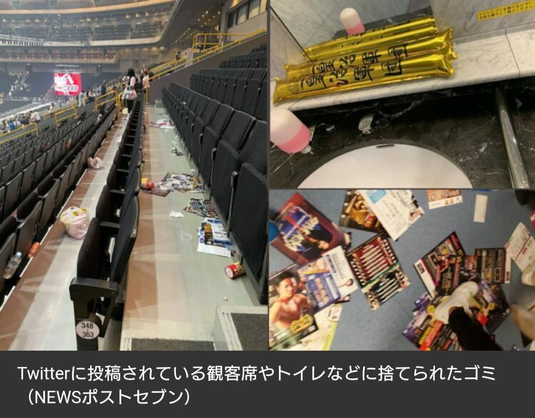 「清掃業者からの報告はまだ受けていませんが、たしかにコンサートなどより飲食が売れるぶん、格闘技イベントはゴミが出やすい傾向はあります。格闘技やスポーツイベントは観客の出入りも激しいので、ゴミが散らばりやすいのが実情です。特に昨日のRIZINは12時始まりの20時終わりという長時間興行だったため、ゴミが増えやすかったのかもしれません」(さいたまスーパーアリーナの関係者)