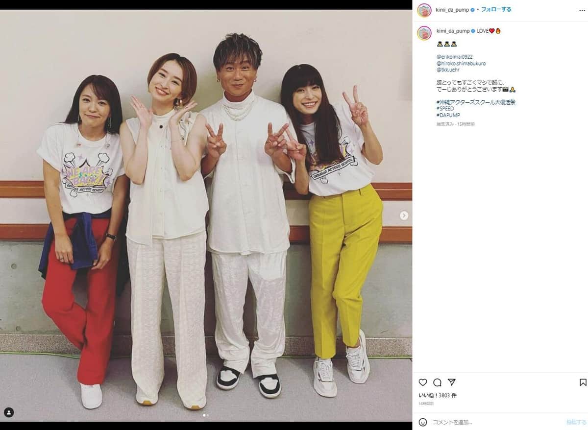 今井氏は2022年10月2日に行われたイベント「沖縄アクターズスクール大復活祭~本土復帰50周年記念~」で、島袋寛子さんのステージにサプライズゲストとして上原多香子さんとともに登場。SPEEDのデビュー曲『Body&Soul』を3人で披露した。