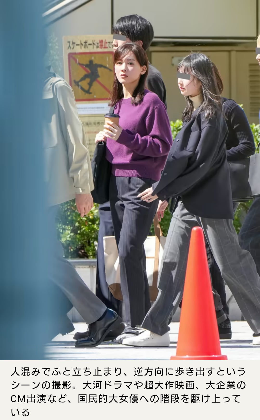 人混みでふと立ち止まり、逆方向に歩き出すというシーンの撮影。大河ドラマや超大作映画、大企業のCM出演など、国民的大女優への階段を駆け上っている