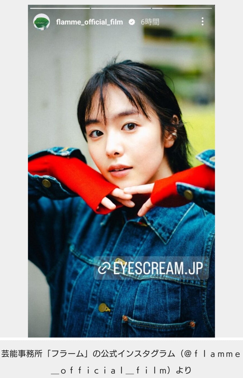 赤いトップスに上下デニム姿の全身ショットや黒髪のショートヘアをアレンジした顔のアップなどがストーリーズに掲載された。身長167センチの長身でスタイルの良さが際立っている。