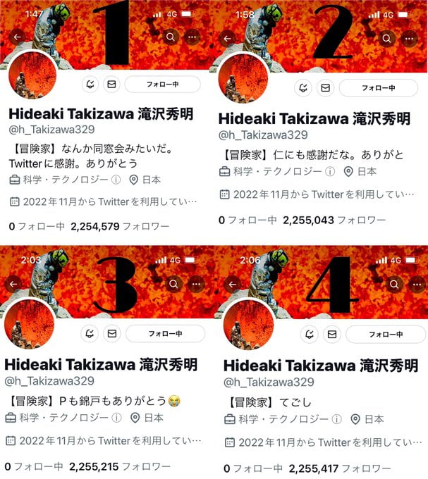 滝沢氏は7日のアカウント開設以降、投稿をせずに何度もプロフィール欄を更新している。この日も「Twitter寝ずに猛勉強中!早く公式バッチ欲しいな。今日は7時間も寝たわ」とプロフィール欄につづった。