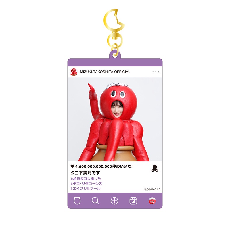 ファンが指摘した「タコ」のキーホルダーは、実は、元乃木坂46の山下美月のオリジナルグッズ。昨年のエイプリルフールの24時間限定で発売されたもので、山下のファンによると「タコ下美月アクリルカードキーホルダーは約16時間しか買えなかった超強火美月ヲタアイテム」だという。