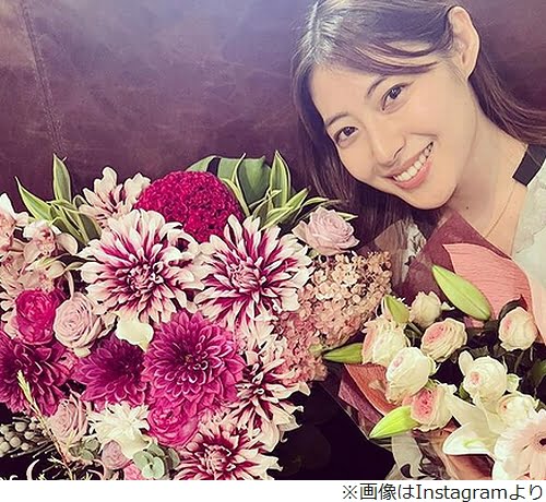 また、「お仕事でお世話になっている方々から、お誕生日のお花をたくさんいただきました。花束は親友が持ってきてくれて、『私達ももう30だよ!』なんて言いながら、笑 近い誕生日を一緒にお祝いしました。幸せだな」と、華やかな花束との写真を投稿。
