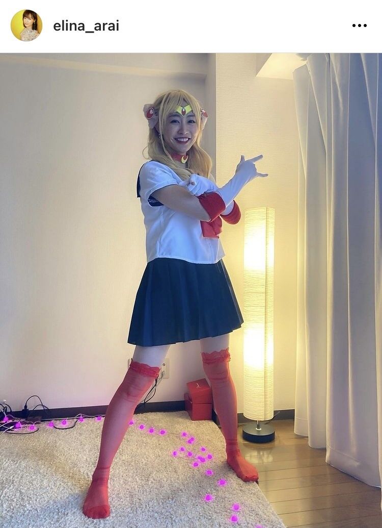 1: ひかり ★ 2021/11/01(月) 08:50:03.74 ID:CAP_USER9フリーの新井恵理那アナウンサーが31日、自身のインスタグラムを更新。「美少女戦士 セーラームーン」の仮装ショットを公開した。