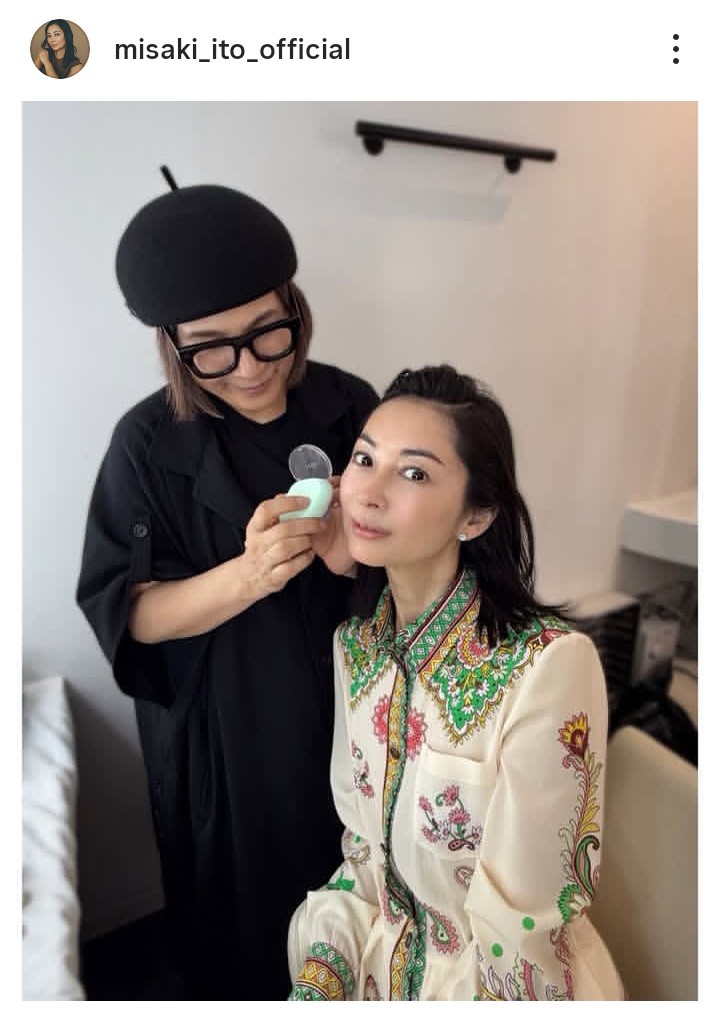 投稿では「マネージャーより。お世話になっているヘアメイクの千吉良恵子さんがプロデュースされた、新しいコスメ『ifoo』とある撮影にて一足早く使用させていただいたのですが、とっても素敵でした!」とつづられ、メーク室での伊東の近影をアップ。