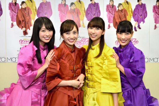 ももいろクローバーZの(左から)佐々木彩夏、百田夏菜子、玉井詩織、高城れに=片岡純撮影、朝日新聞