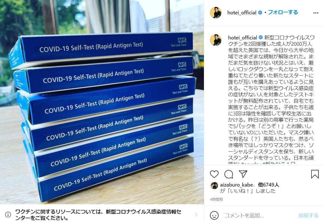 1: 砂漠のマスカレード ★ 2021/05/19(水) 08:39:21.68 ID:CAP_USER9ミュージシャンの布袋寅泰さんが2021年5月18日、自身のインスタグラムで、自身の住むイギリスの新型コロナウイルス対策の現状について報告した。